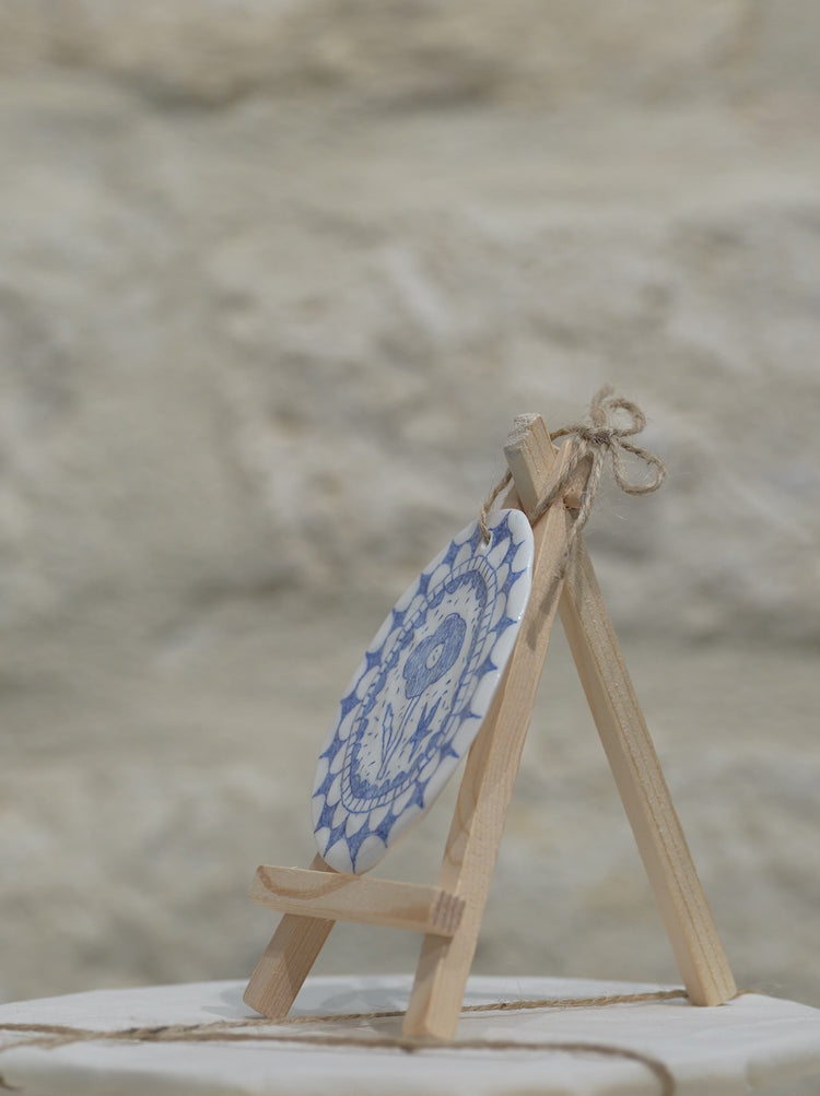 Douces et sensibles, ces pièces uniques réalisées à la main invitent le quotidien à se mêler à l’imaginaire, transformant l’utile en poétique. Les nuances de bleu et de blanc composent un récit visuel où chaque trait raconte une histoire, ouvrant la voie à la contemplation et à la rêverie.