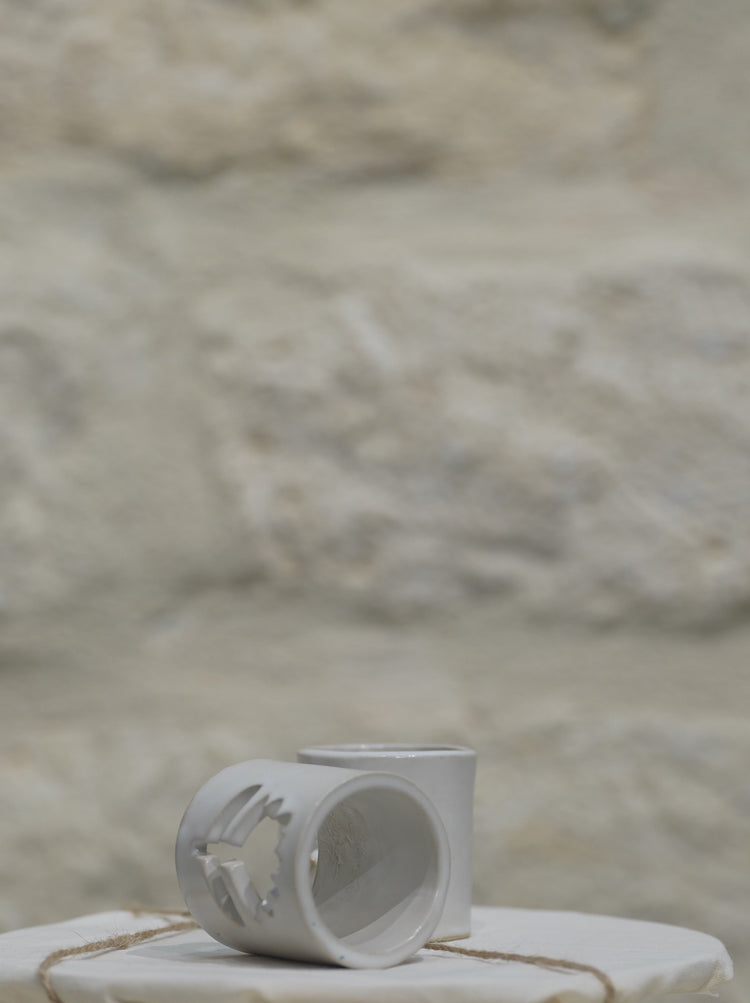 De cette collaboration naissent des bols, des tasses et des ronds de serviette d’un émail blanc brillant sur grès blanc et ornés du motif emblématique de l’oiseau en vol.